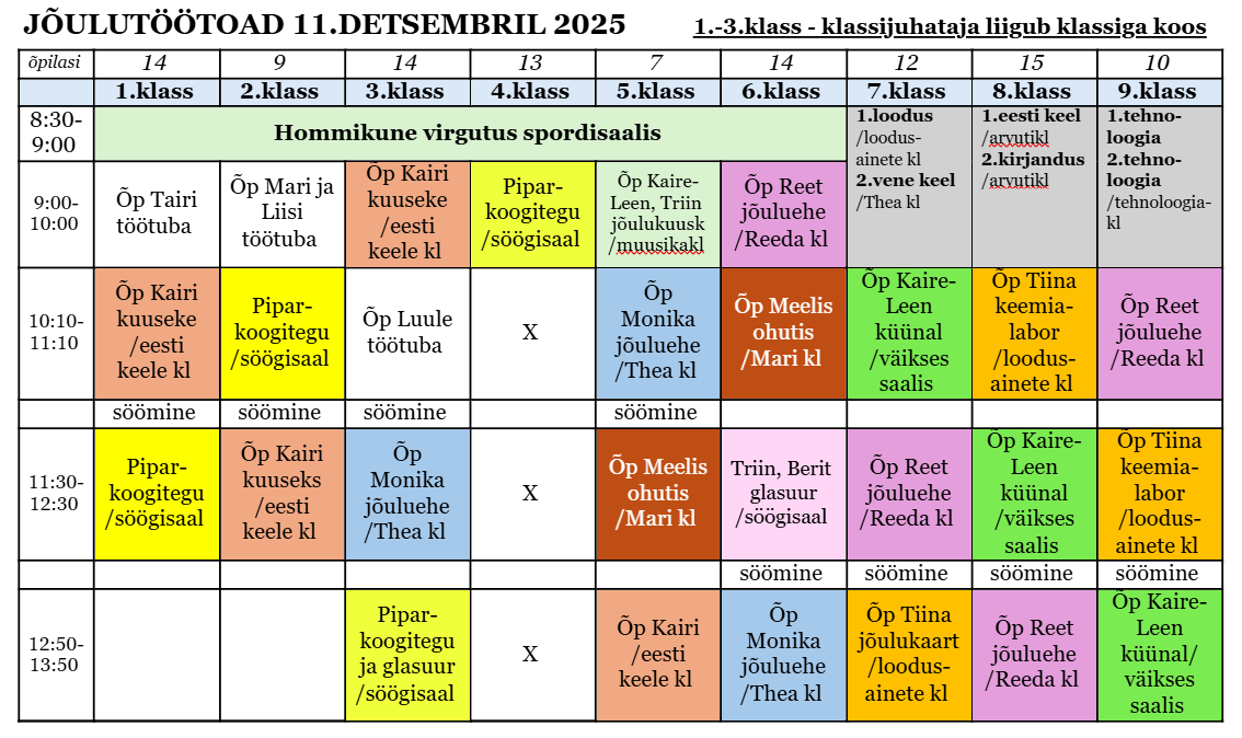 Kolmandal kooliastmel algab päev tunniplaanijärgselt kahe esimese tunniga. Edasi liituvad ka nemad jõulutöötubadega.